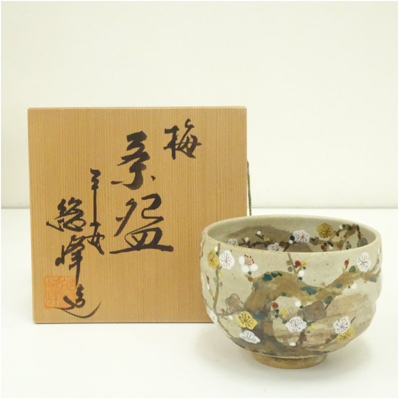 京焼 田中総峰造 色絵梅茶碗(共箱)