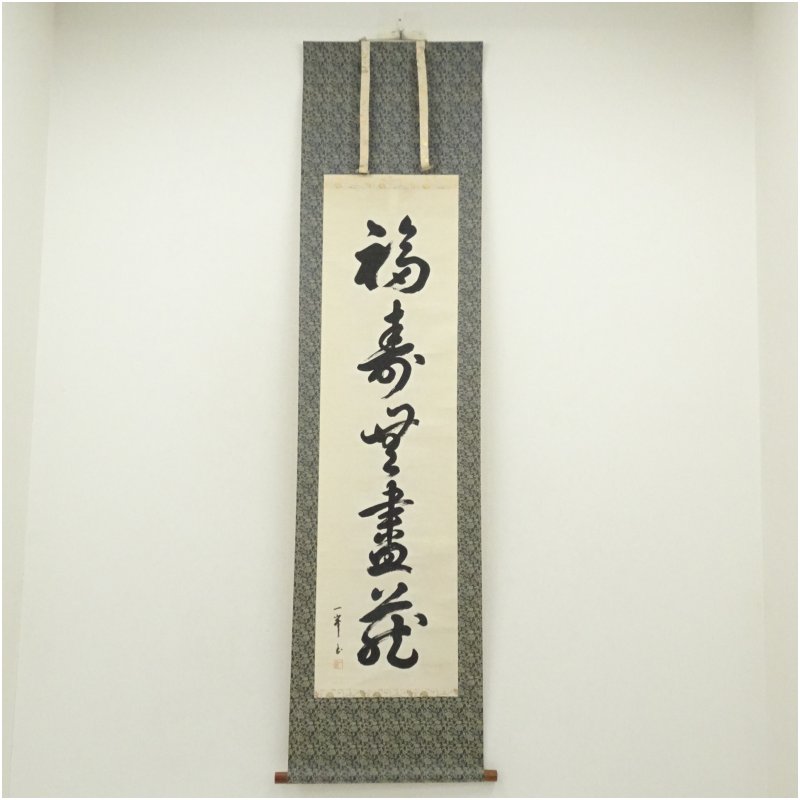 一峯筆 「福寿海無量」一行書 肉筆紙本掛軸(保護箱) [01-251021a-004a]