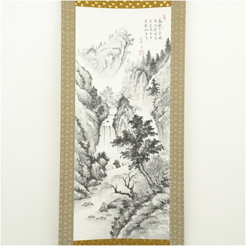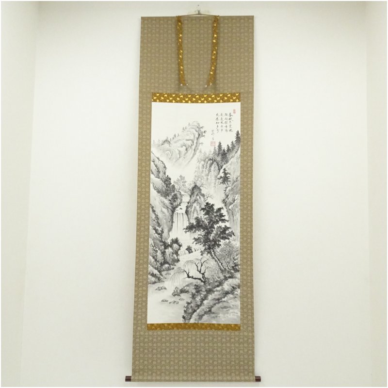 悠峰筆 水墨山水 肉筆紙本掛軸(共箱) [01-251021a-005a]