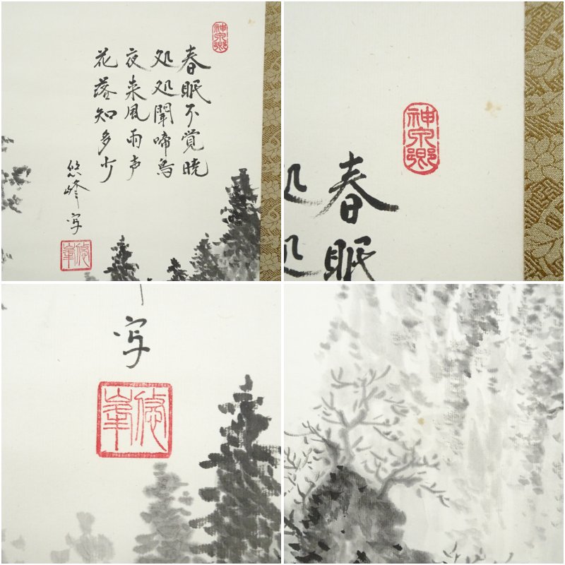 悠峰筆 水墨山水 肉筆紙本掛軸(共箱)