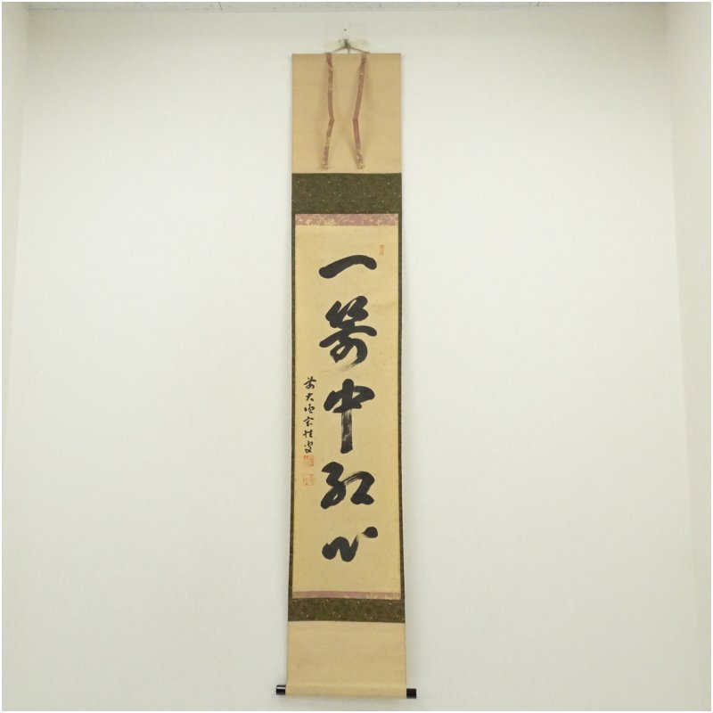 前大徳 宮西玄性筆 「一箭中紅心」一行書 肉筆紙本掛軸(共箱)