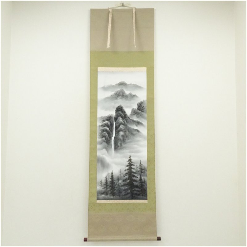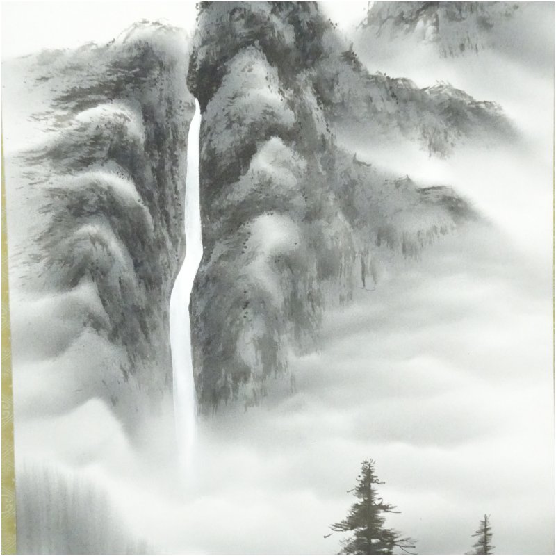 玉堂筆 妙義山 水墨山水 肉筆絹本掛軸(共箱) [01-251021a-019a]