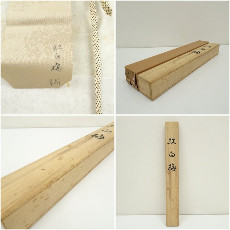 美舟筆 紅白梅 肉筆絹本掛軸(共箱) [01-251021a-021a]