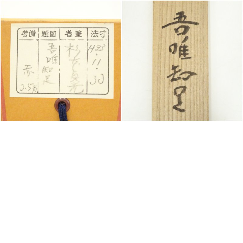 信楽焼 杉本貞光筆 「吾唯知足」画賛 肉筆紙本掛軸(共箱) [09-251022c-045a]