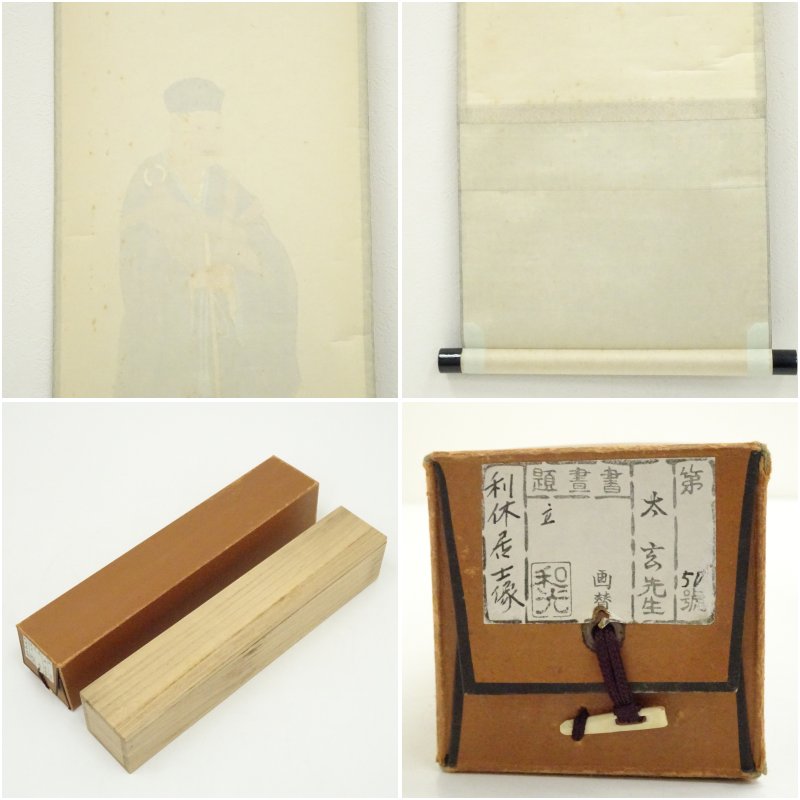 大徳寺小林太玄筆 遺偈 和光筆 利休居士像 肉筆紙本掛軸(共箱) [09-251022c-061a]