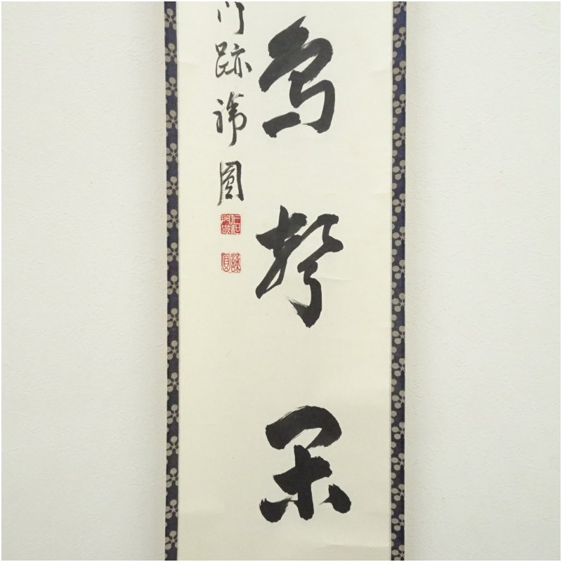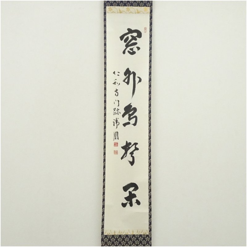 仁和寺 森諦圓筆 「窓外鳥聲閑」一行書 肉筆紙本掛軸(共箱・二重箱) [09-251022c-070a]
