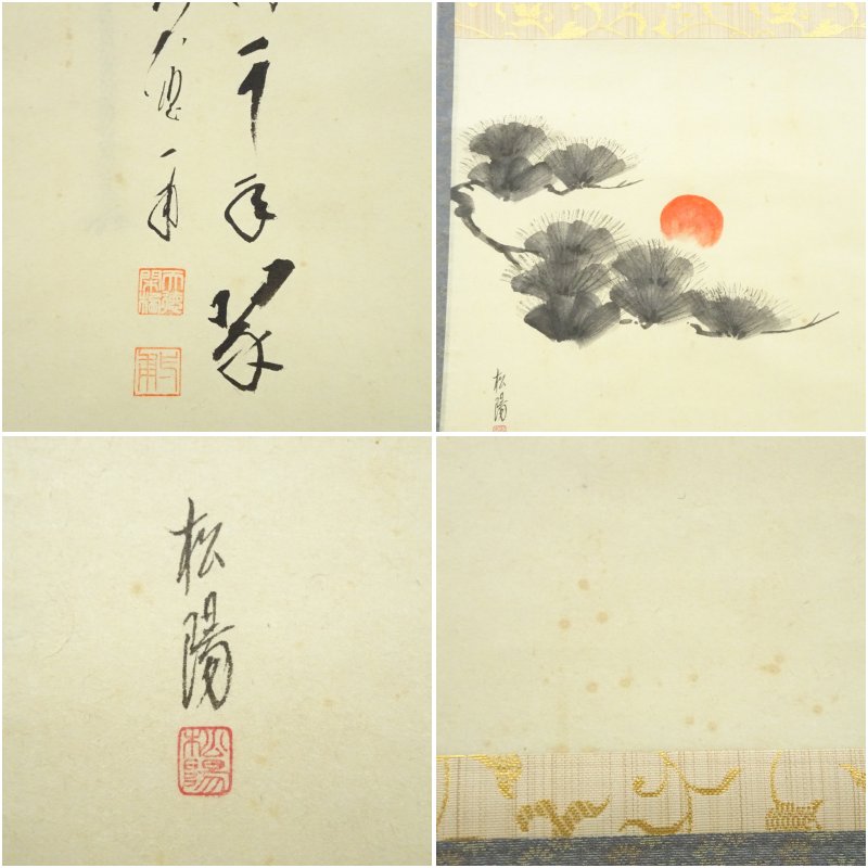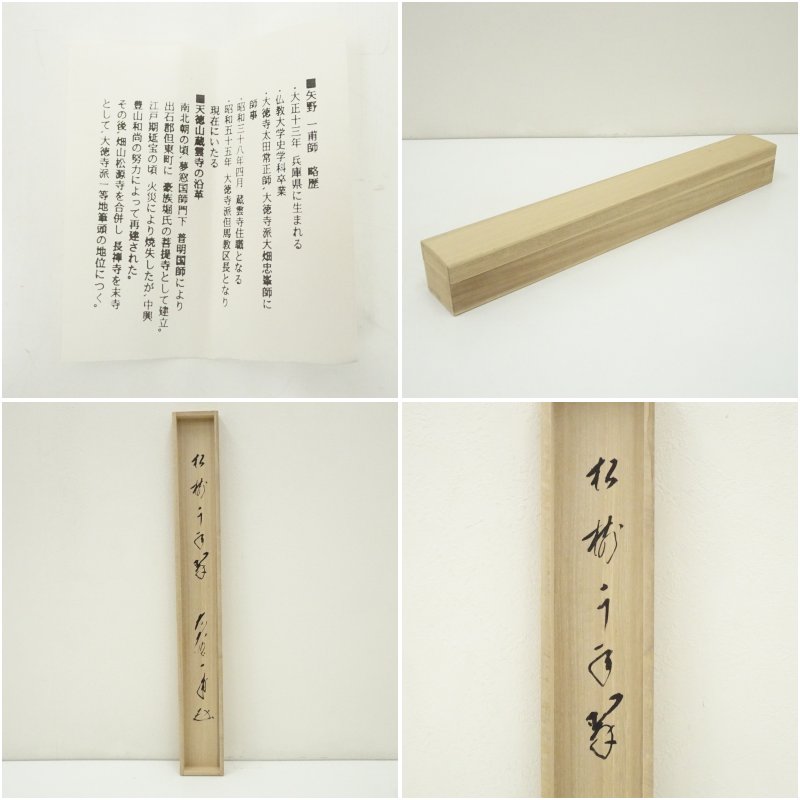 前大徳 矢野一甫(海渕)筆 「松樹千年翠」松陽筆 松画賛 肉筆紙本掛軸(共箱) [13-251023c-006a]