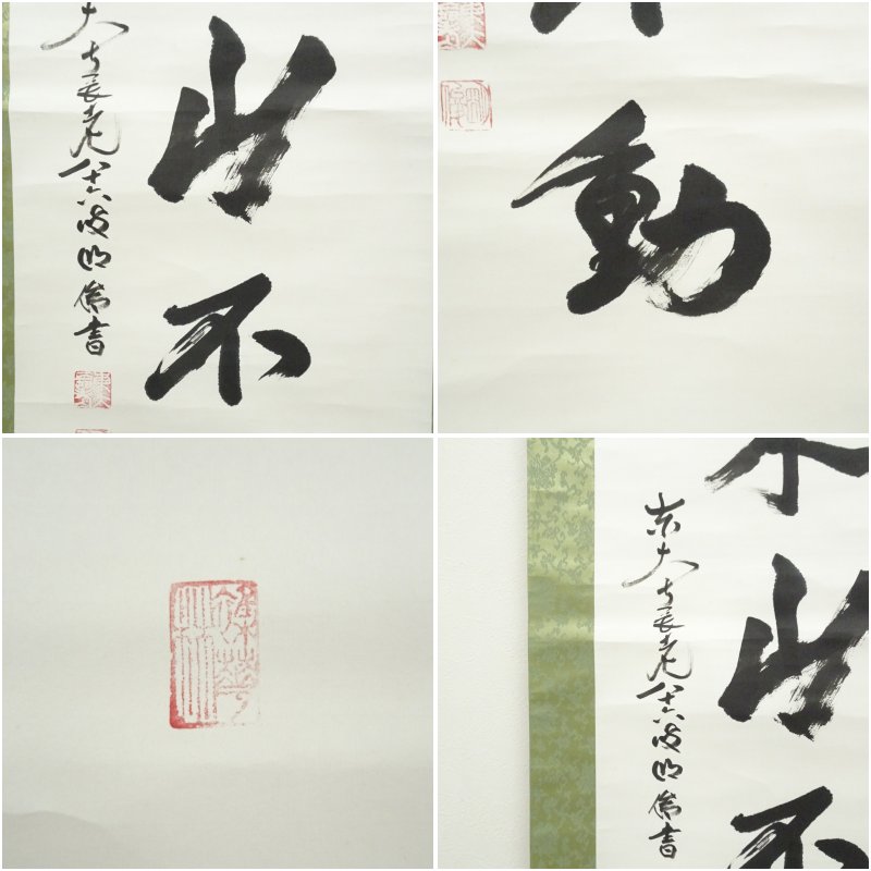 東大寺 狭川明俊筆 「雲去来山不動」一行書 肉筆紙本掛軸(共箱)