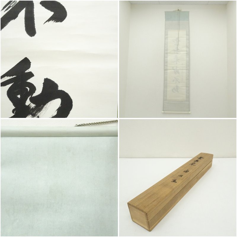 東大寺 狭川明俊筆 「雲去来山不動」一行書 肉筆紙本掛軸(共箱) [13-251023c-028a]