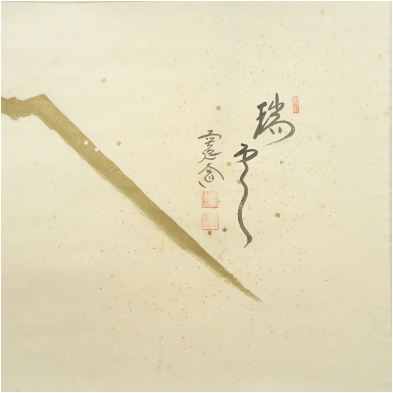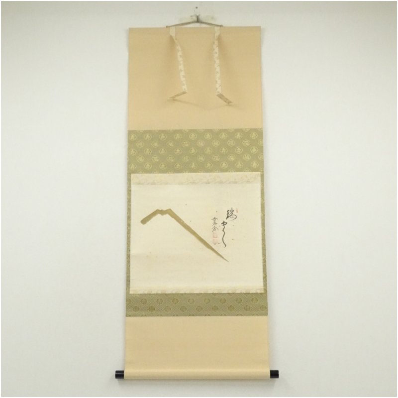 前大徳 西垣大道筆 「瑞雲」横物 富士画賛 肉筆紙本掛軸(保護箱)