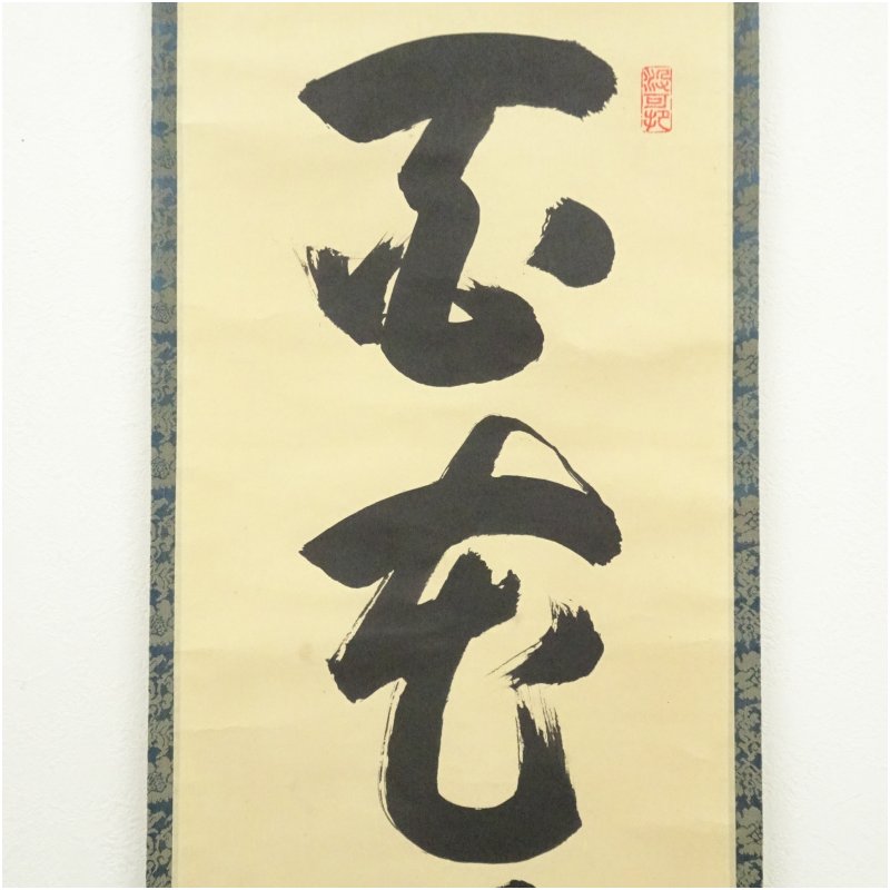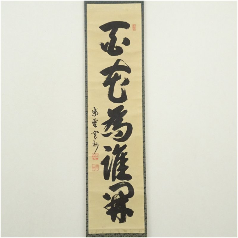 大徳寺 長谷川寛州筆 「百花為誰開」一行書 肉筆紙本掛軸(共箱)