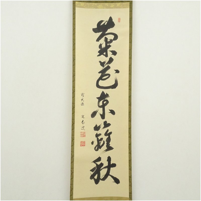 前大徳 小堀定泰筆 「菊花東籬秋」一行書 肉筆紙本掛軸 [13-251023c-035a]