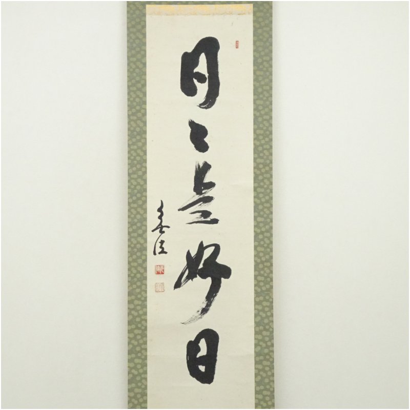 妙興寺 狭間宗義筆 「日々是好日」一行書 肉筆紙本掛軸(共箱) [13-251023c-050a]