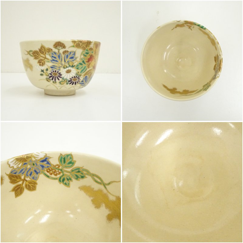 鳳雲造 金彩色絵四季草花文茶碗(保護箱) [13-251023d-029a]