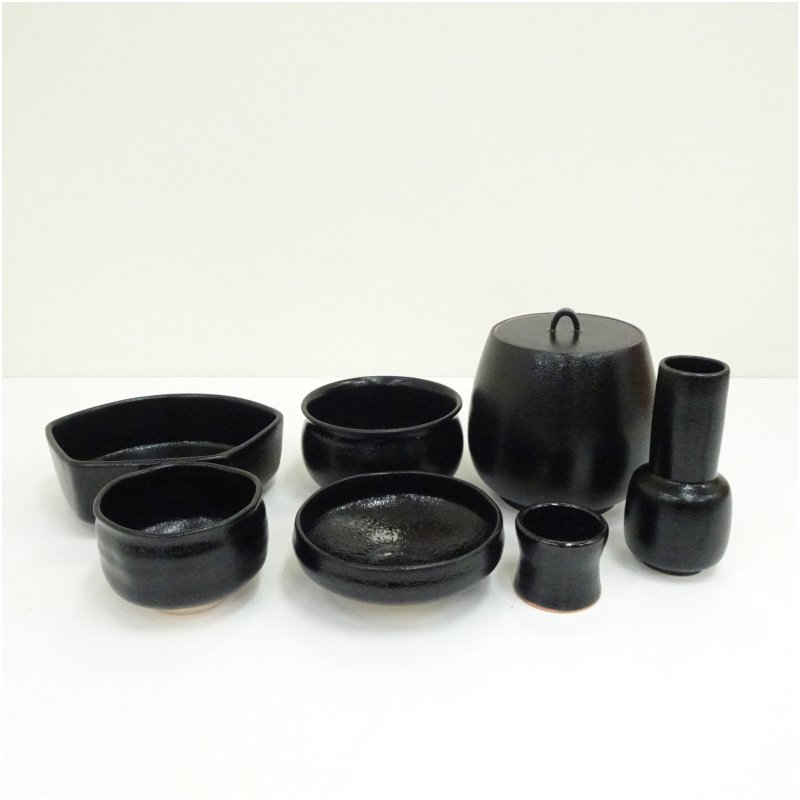 杉浦芳樹造 柚子黒皆具(共箱) [13-251023d-037b]