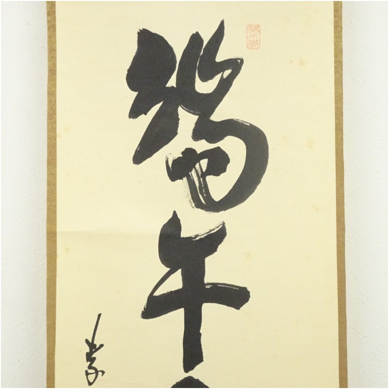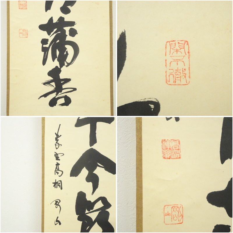 大徳寺 松長剛山筆 「端午令節蒲香」一行書 肉筆紙本掛軸(共箱) [13-251024c-016a]