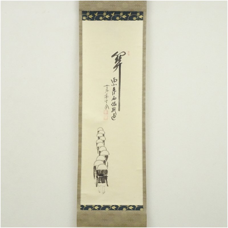 前大徳 西垣大道筆 「関 南北東西活路通」雲水画賛 肉筆紙本掛軸(共箱) [13-251024c-026a]