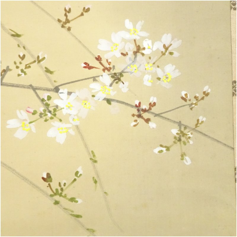 今井景樹筆 夜桜 肉筆絹本掛軸(共箱)