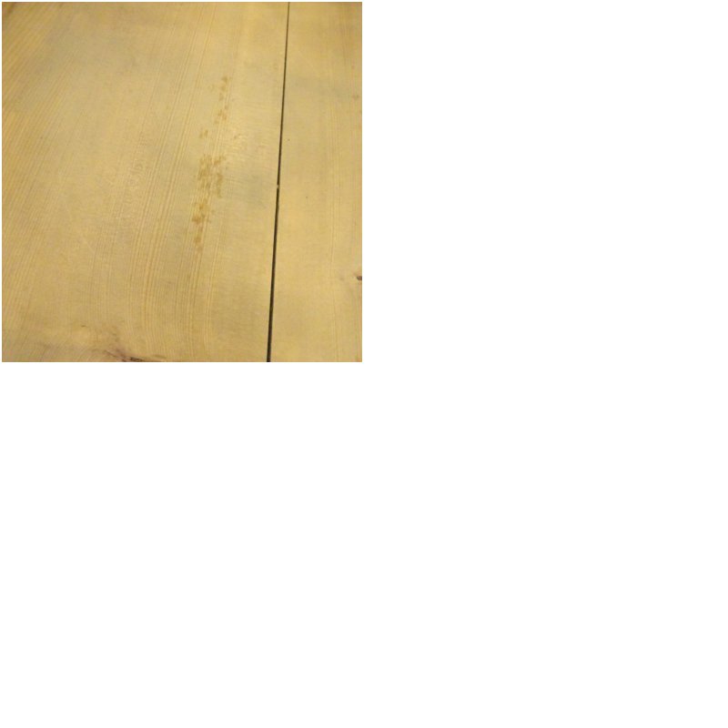 木箱に経年による劣化があり、側面にテープ跡と張り紙があります。