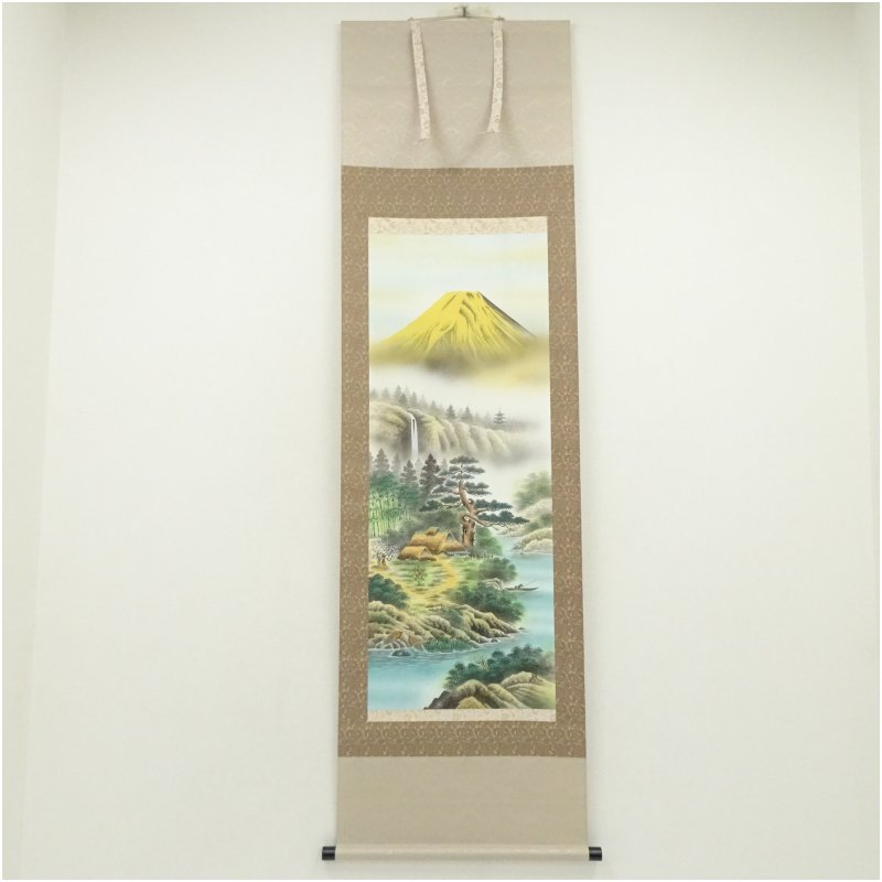 高井一鳳筆 対沖厳封山水図 肉筆絹本掛軸(共箱) [01-251027c-019a]