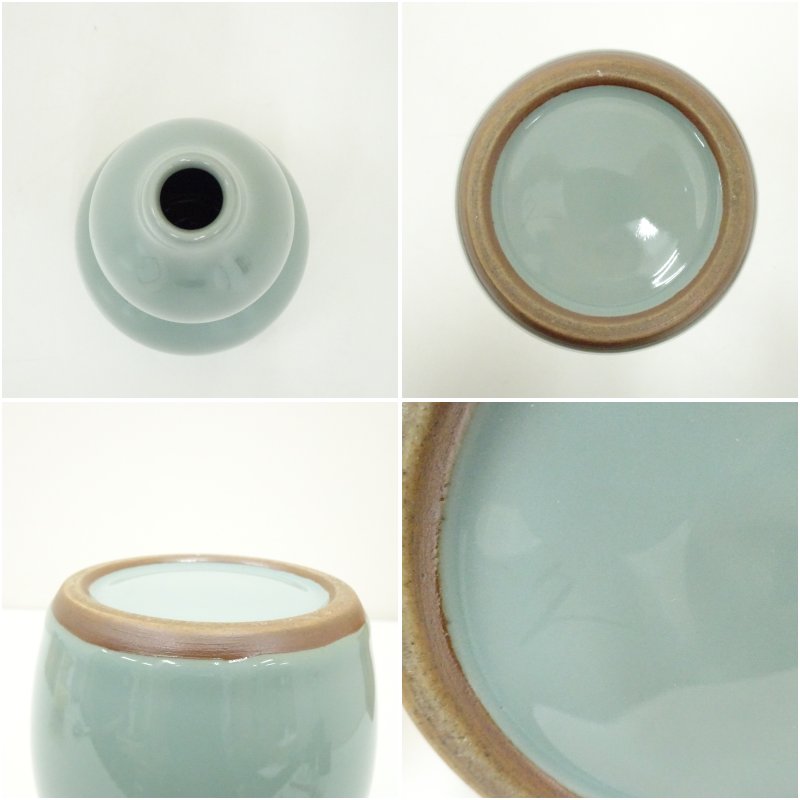 京焼 米沢久造 青磁瓢花入(共箱) [13-251027a-012a]