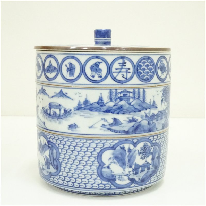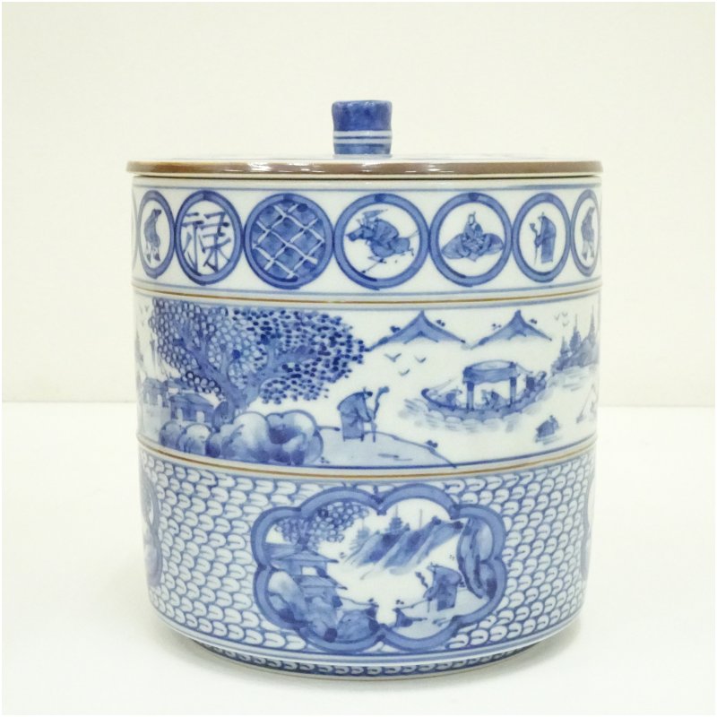 京焼 平安 高野昭阿弥造 青華祥端写水指(共箱) [01-251028c-024a]