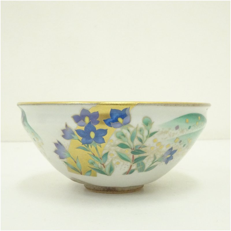 京焼 桑野睦子造 御所の花 桔梗茶碗 [01-251028c-046a]