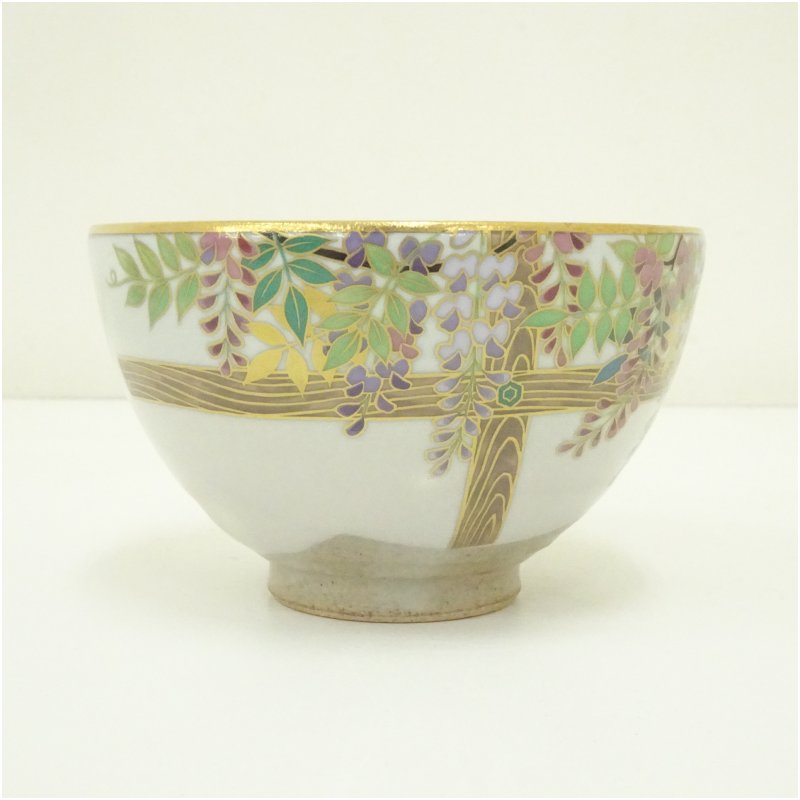 京焼 桑野睦子造 御所の花 藤茶碗 [01-251028c-050a]