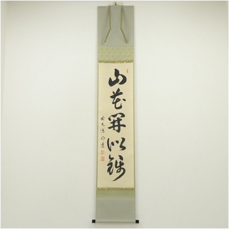 前大徳 戸上明道(宗賢)筆 「山花開似錦」一行書 肉筆紙本掛軸(共箱) [14-251030c-002a]