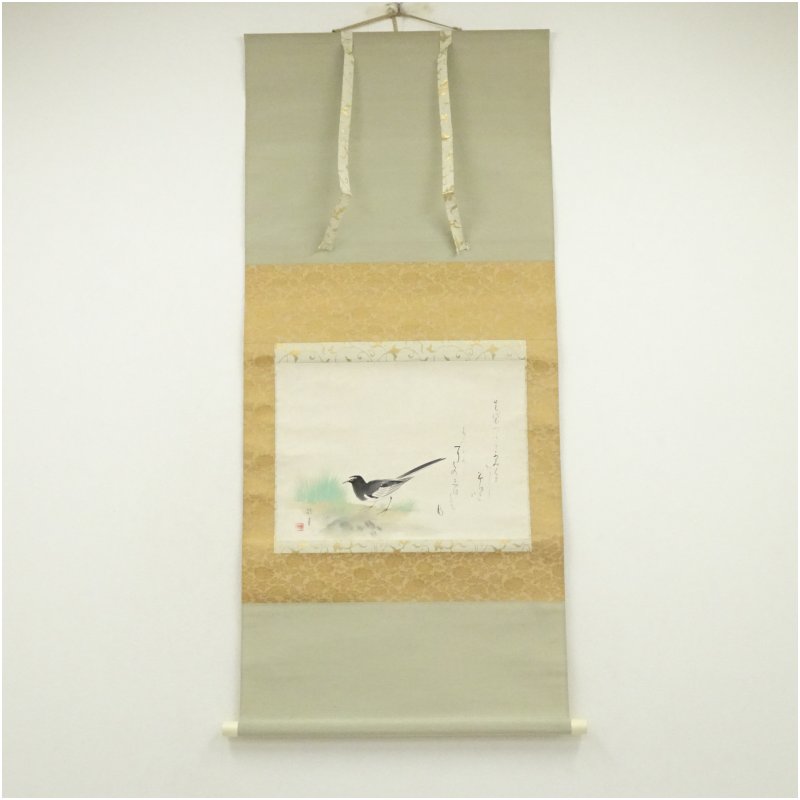 小野踏青筆 好日 小禽 肉筆紙本掛軸(共箱) [14-251030c-009a]