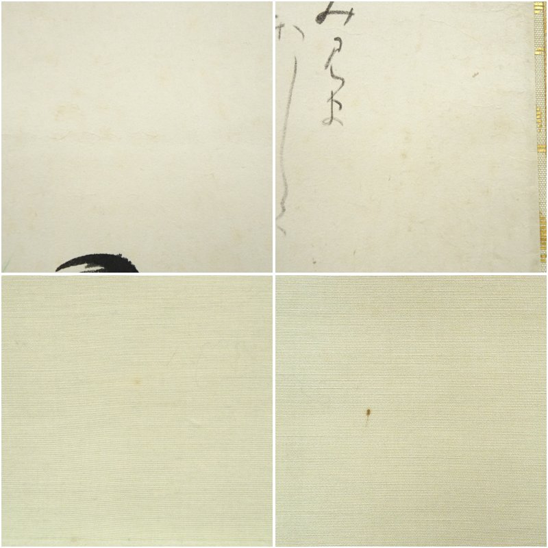 表具:表面上部に薄いヤケがあり、1ヶ所小さな色褪せがあります。表面に小さなシミと汚れが少しあります。裏面に薄いシミが少しあります。
