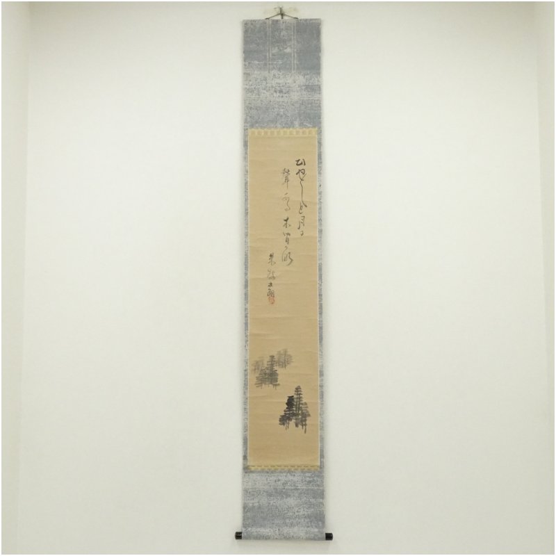 江戸後期 井上士朗筆 俳句 木立画賛 肉筆紙本掛軸(保護箱) [14-251030c-011b]