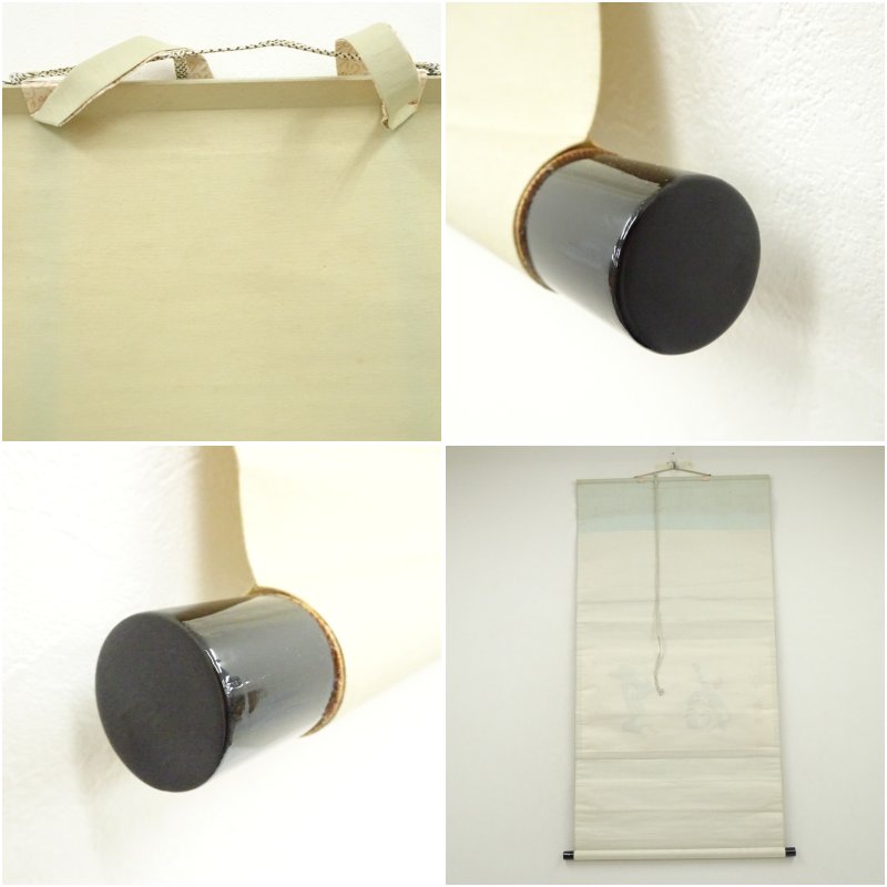 表具:表面上部に薄いヤケがあり、下部に巻き皺があります。表面にシミが少しあり、上部中廻し付近にのり剥がれがあります。裏面上下部を中心に薄いシミがあります。