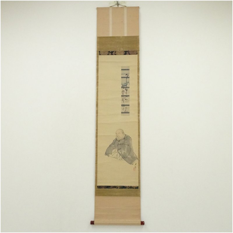 江戸後期 張月樵筆 井上士朗像・井上士朗筆 俳句短冊合装 肉筆紙本掛軸(保護箱) [14-251030c-019b]