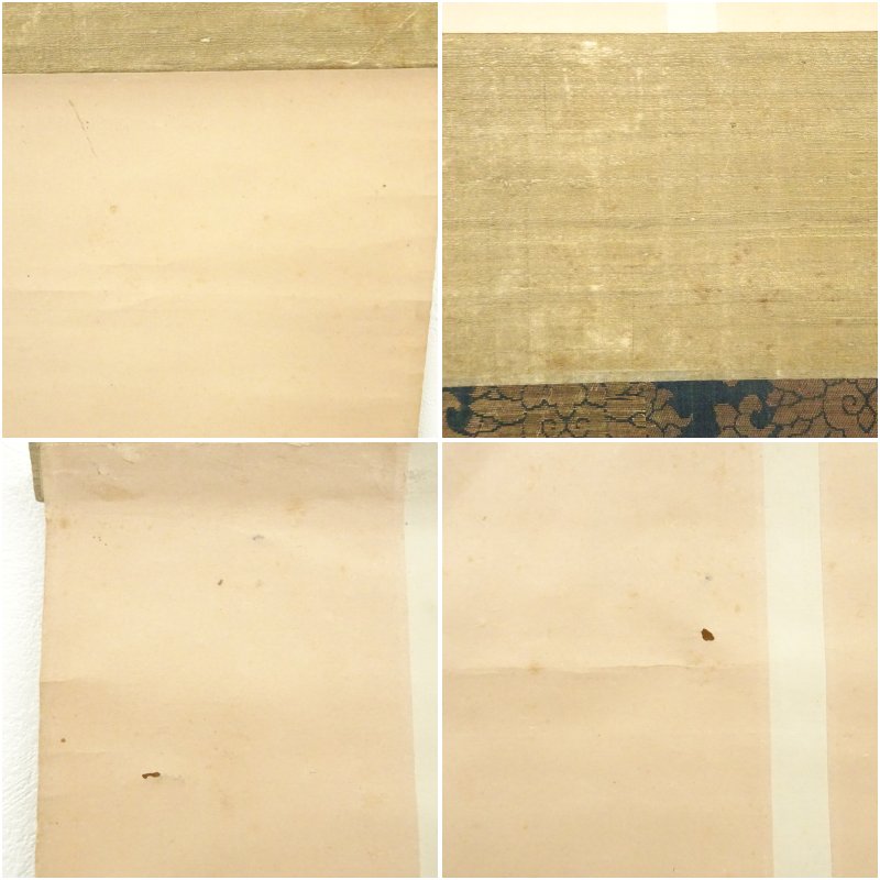 本紙と表具両面にシミや折れ等の経年による劣化があります。