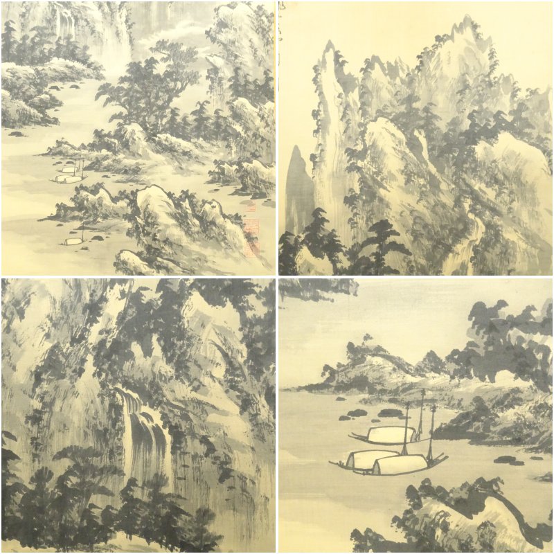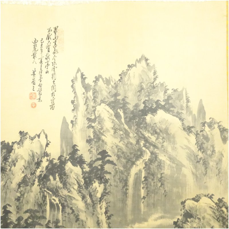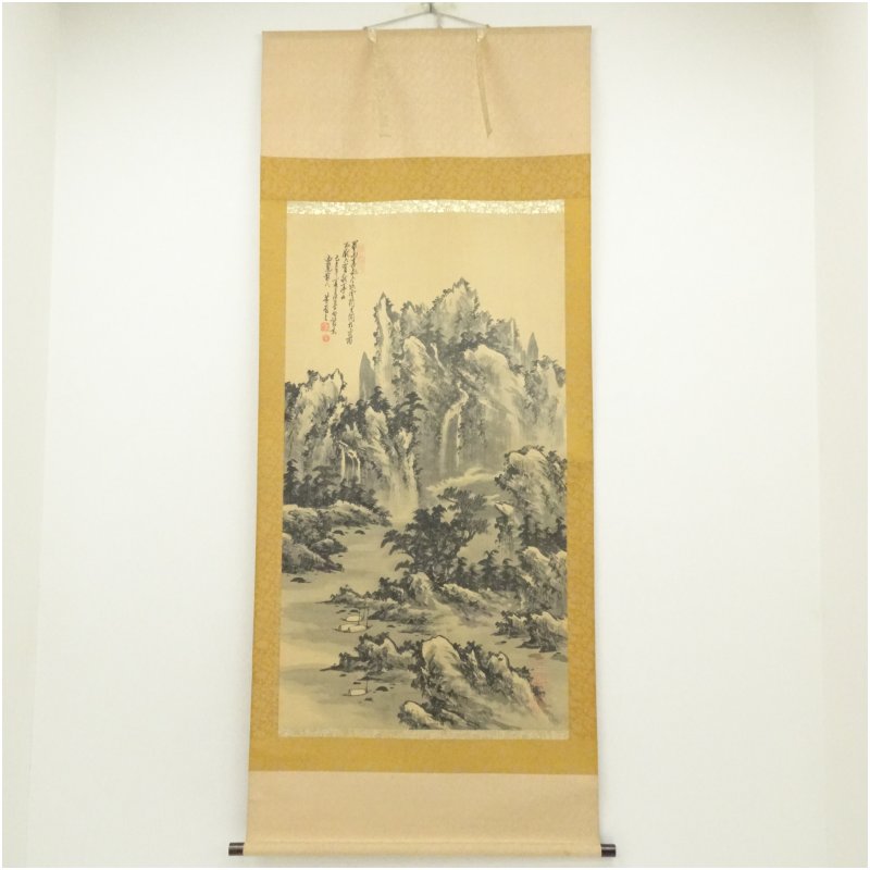 黄眉三筆 水墨山水 肉筆絹本掛軸(保護箱) [01-251030c-022b]