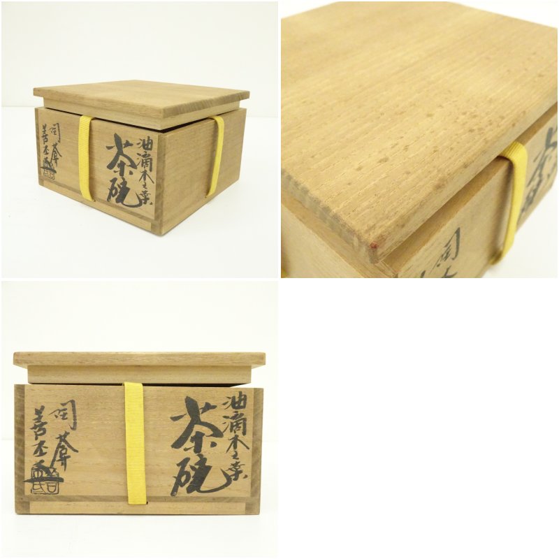 京焼 陶あん窯 土渕善丕?造 油滴木葉茶碗(共箱)