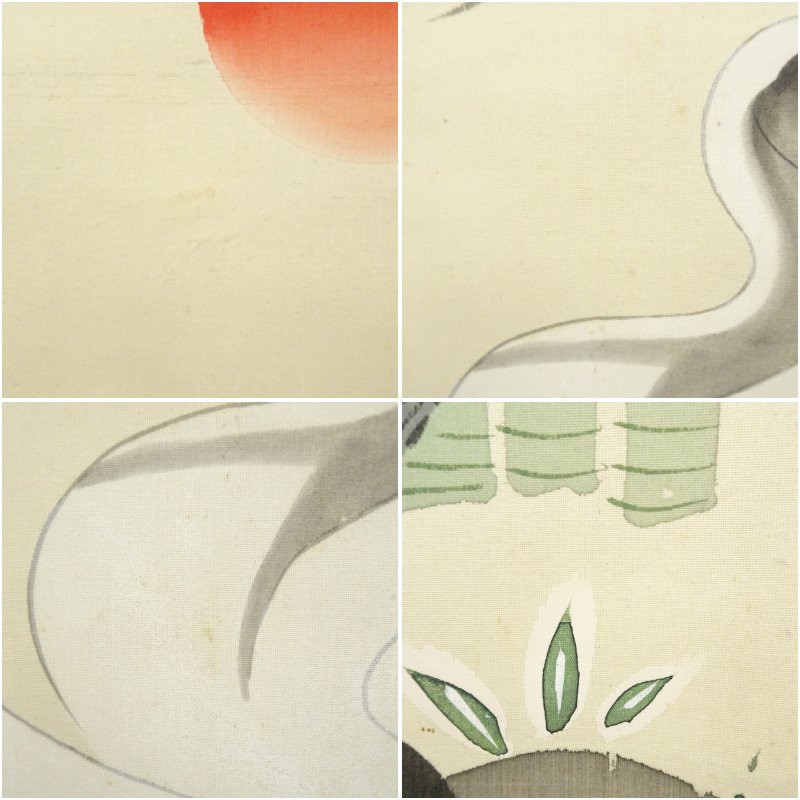 仙樵筆 松竹梅鶴亀 肉筆絹本掛軸(共箱) [01-251030c-028b]