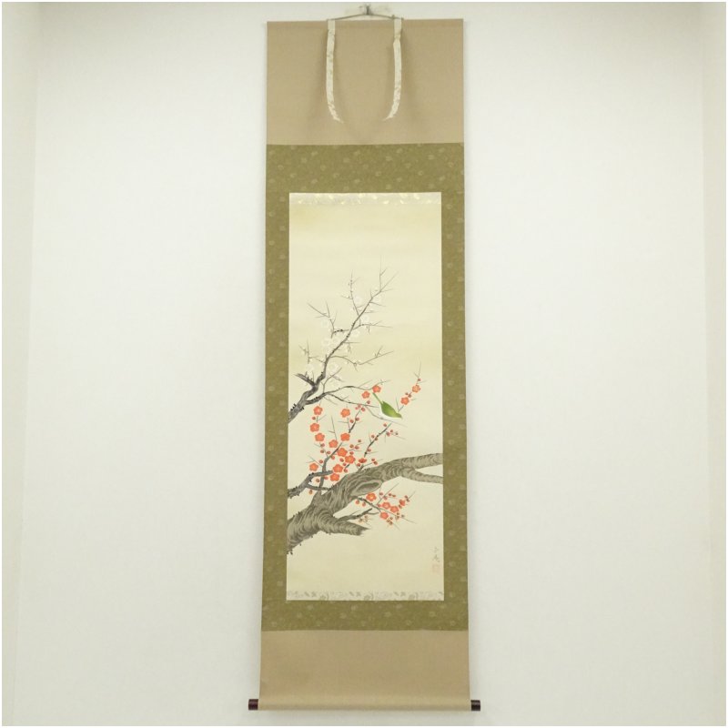 正庵筆 梅に鶯 肉筆絹本掛軸(共箱) [01-251030c-029a]