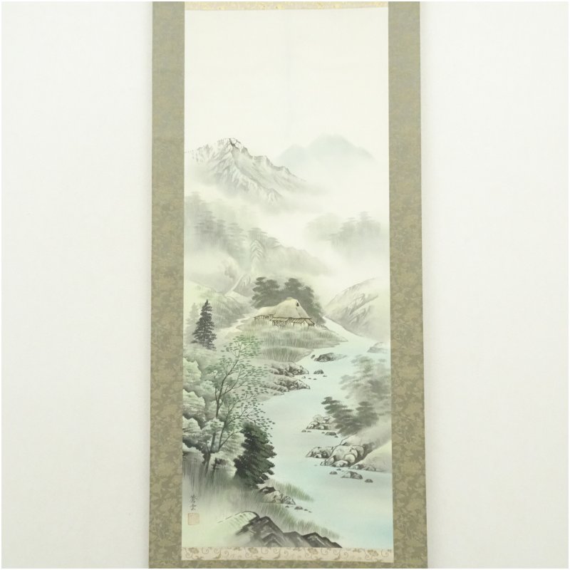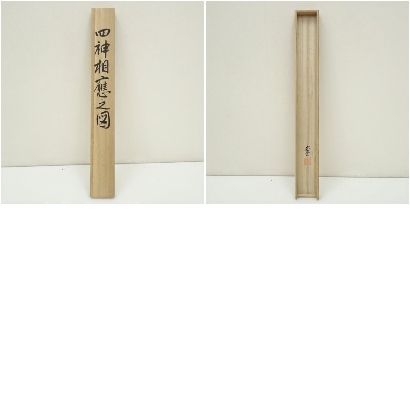 山川蒼雲筆 四神相応図 肉筆絹本掛軸(共箱)