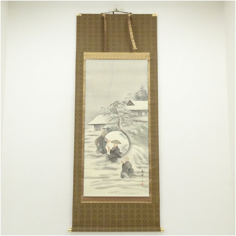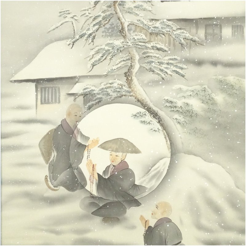 観峰筆 親鸞聖人雪枕図 肉筆絹本掛軸(共箱) [01-251030c-038a]