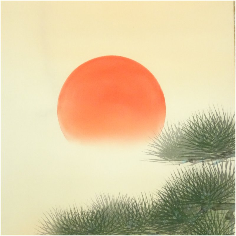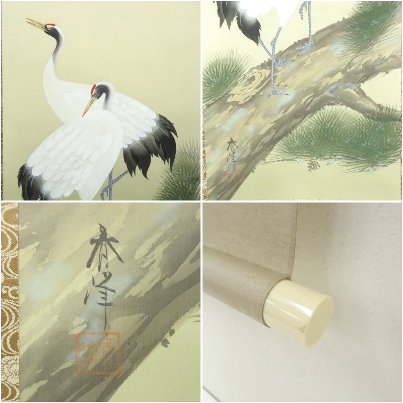 小栗春峰筆 松上鶴 肉筆絹本掛軸(共箱) [01-251030c-040a]