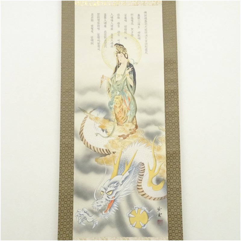 紫雲筆 龍雲観音図 肉筆絹本掛軸(保護箱) [01-251030c-044a]