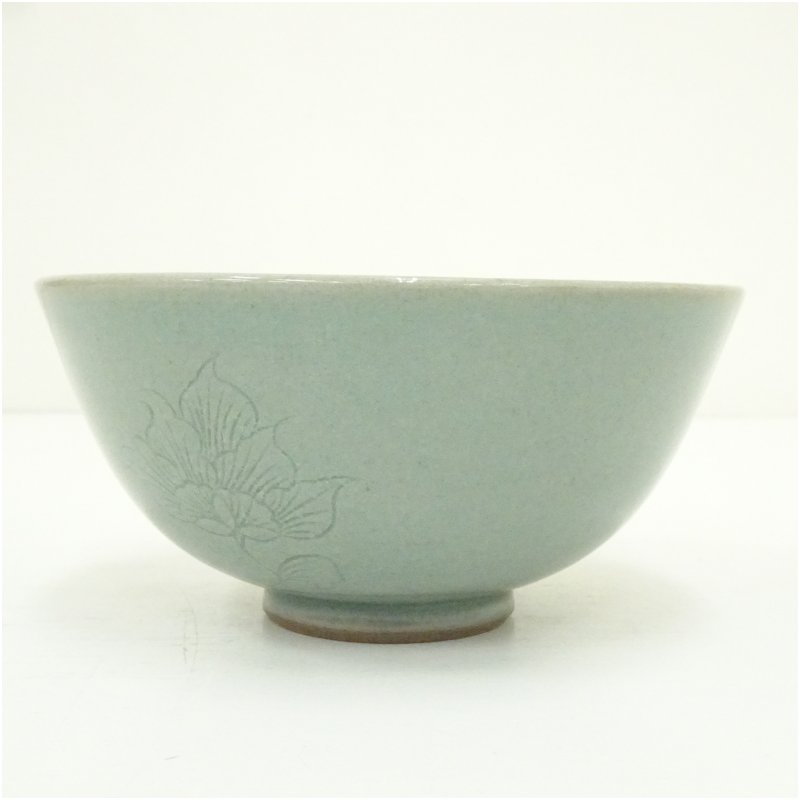 月岩窯 文伸圭造 高麗青磁茶碗(共箱) [13-250613c-073a]