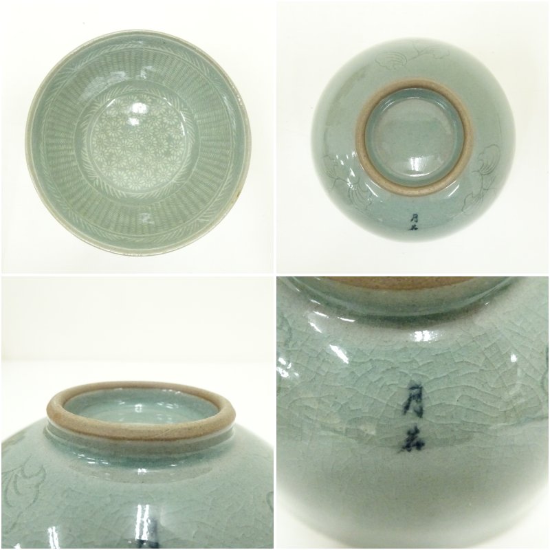 月岩窯 文伸圭造 高麗青磁茶碗(共箱)