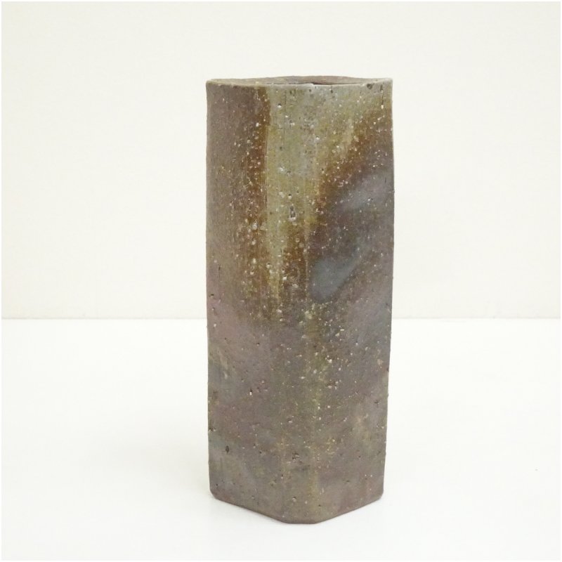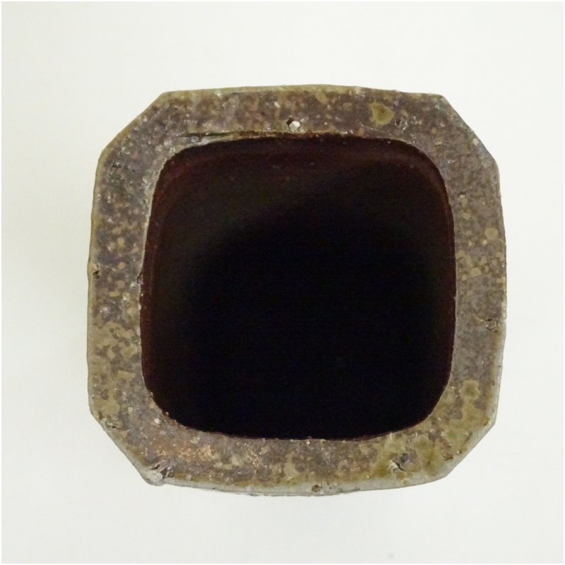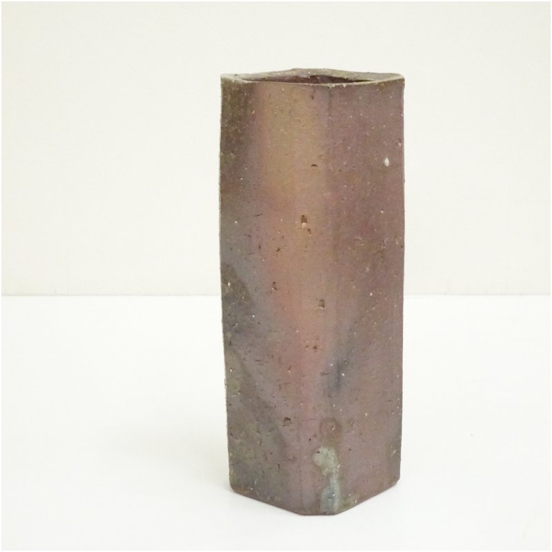 備前焼 松田華山造 四方花入(共箱) [13-251030d-022a]