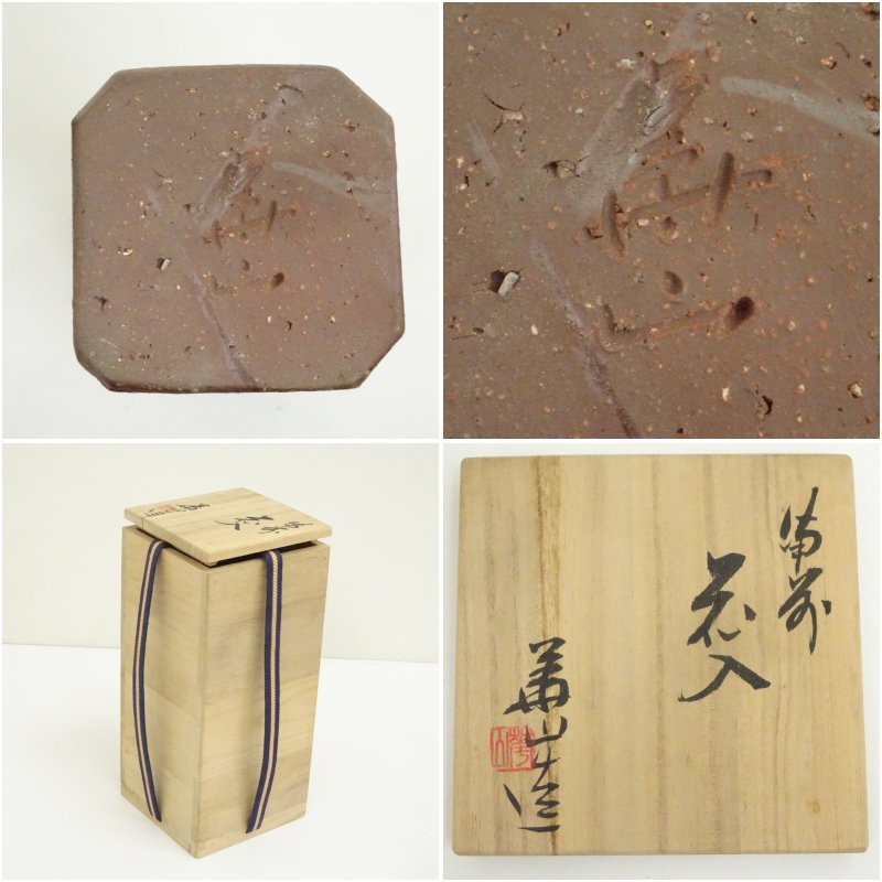 備前焼 松田華山造 四方花入(共箱)