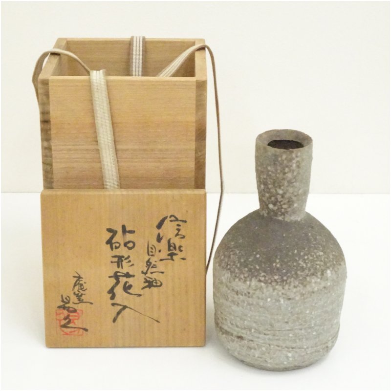 信楽焼 庵窯 神山易久造 自然釉砧形花入(共箱)
