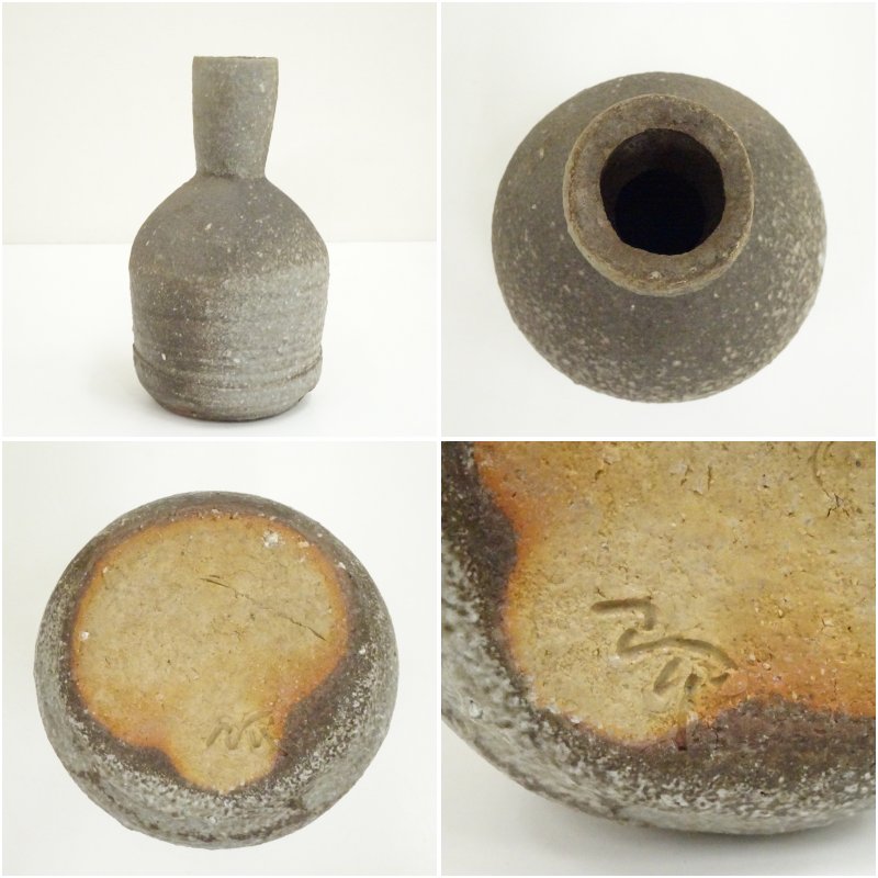 信楽焼 庵窯 神山易久造 自然釉砧形花入(共箱) [13-251030d-023a]