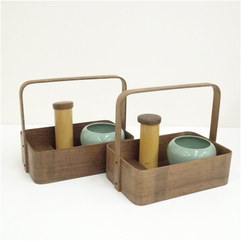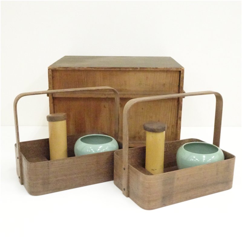 木地手付莨盆2組揃(保護箱) [13-251030d-037a]